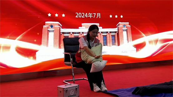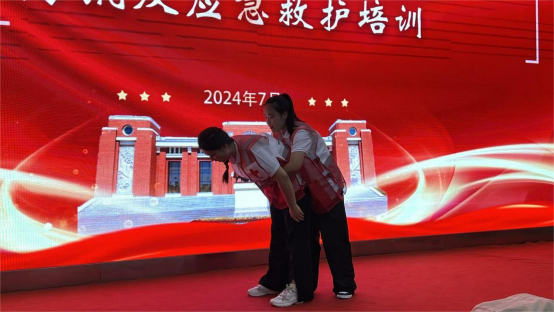 随后,“能院星火”暑期社会实践团重点介绍并现场演示了心肺复苏、成人及婴幼儿海姆立克急救等应急救护基本技能,并通过模拟演练让参训人员亲身体验和操作。培训过程中,参培人员全神贯注听讲,积极参与互动。大家纷纷表示,通过这次培训,不仅增强了防汛意识,还提高了应急救护能力,对于确保纪念馆在汛期的安全稳定具有重要意义。