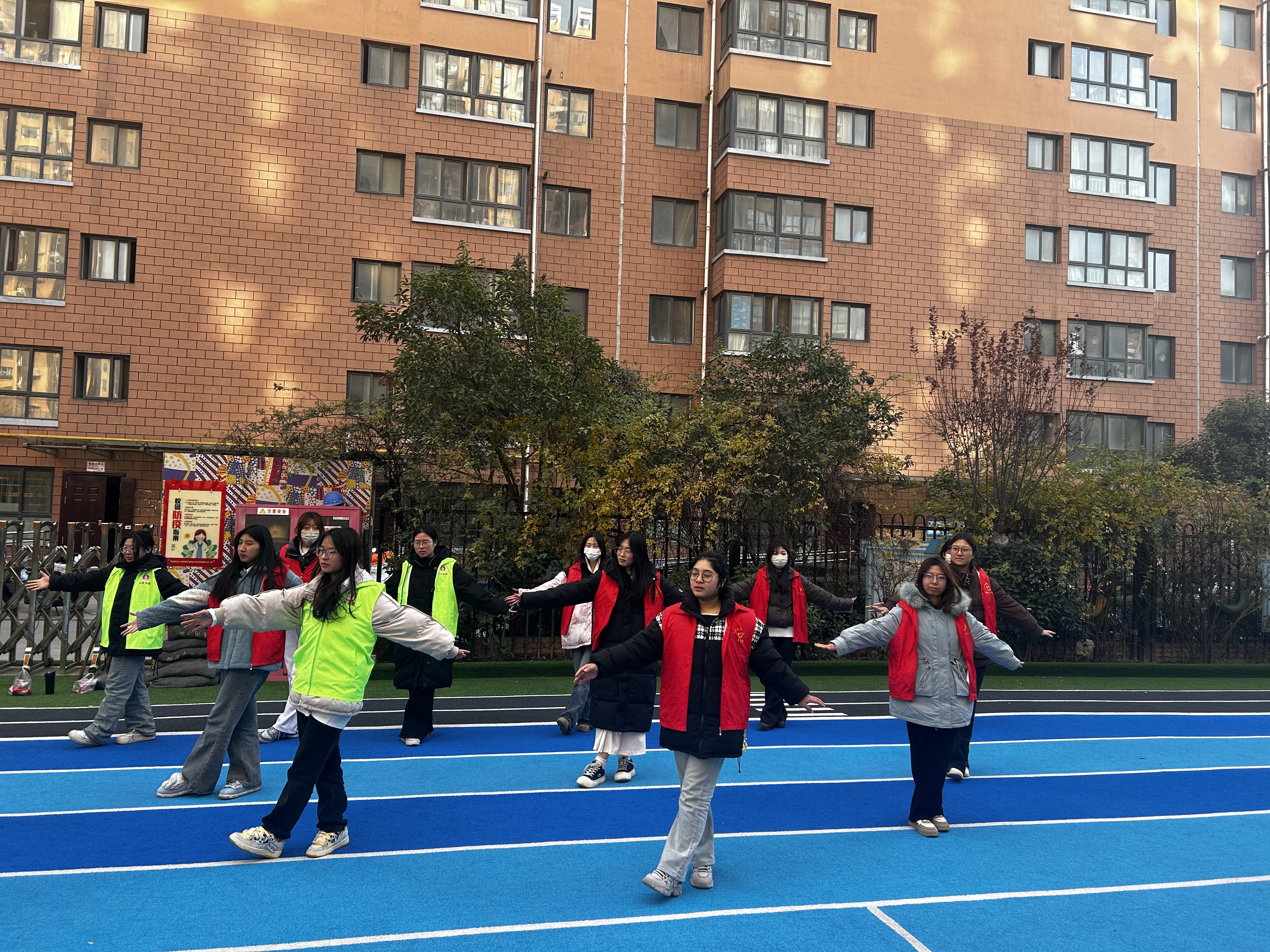 表演结束后,志愿者们并没有停下脚步,而是迅速投入到志愿服务中。他们协助幼儿园老师组织孩子们进行游戏活动,耐心地陪伴在孩子们身边,为他们讲解游戏规则,鼓励他们勇敢尝试、积极参与,操场上回荡着孩子们银铃般的笑声。他们自愿为幼儿园进行清洁服务,为营造孩子们干净安全的环境贡献一份力量。