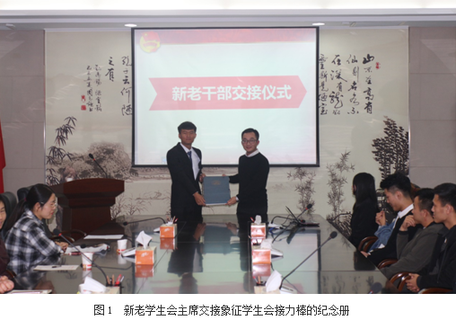 仪式上2015级学生会主席王星代表老一届学生会做了学生会工作报告,2016届学生会主席袁富豪做了就职报告;仪式上对2015届优秀学生会干部进行了表彰,为新一届学生会干部颁发了聘书。2015届学生会主席还向2016届学生会主席交接了象征我院学生会接力棒的、记载着往届学生会寄语和期望的纪念册。