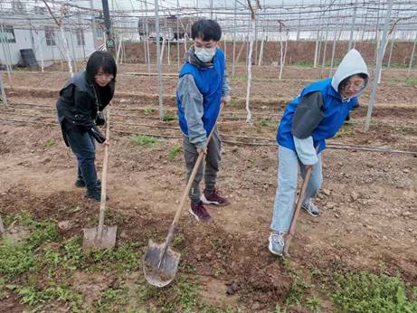 3月19日经济管理学院张栋书记等五名老师同我院学生“逐梦”志愿者们前往兴平“阳光玫瑰”葡萄示范园,进行志愿服务活动,体会田间劳动。在这次活动中,志愿者们充分体现了吃苦耐劳的精神。他们的劳动热情饱满,很多志愿者没干过农活,在工作人员的指导下,也有模有样的除草开渠,有的直接用双手拔出杂草,纵使自己的鞋子和衣服上沾满泥土也毫不在意。