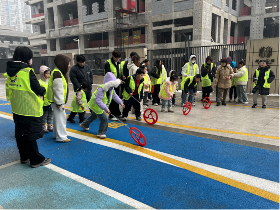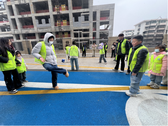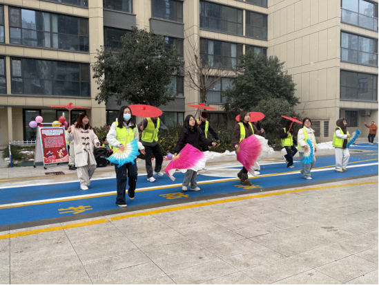 活动现场热闹非凡,投壶的精准瞄准、踢毽子的灵活跳跃、滚铁环的默契配合,一个个经典游戏点燃了孩子们的热情。志愿者们化身“玩伴”,与孩子们并肩闯关,在趣味竞技中耐心引导、默契协作,稚嫩的笑声与欢快的呐喊交织,瞬间拉近了心与心的距离。志愿者带来的特色扇子舞更是将氛围推向高潮,鲜艳的道具随活泼节奏灵动翻飞,孩子们纷纷跟着节拍拍手起舞,脸上洋溢着灿烂笑容。