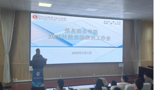 近期信息商务学院在办公楼四楼文林大讲堂召开2026年技能大赛集训工作会。会议由信息商务学院副院长肖敏敏主持、学院相关领导、全体技能大赛指导教师及参赛选手参会。