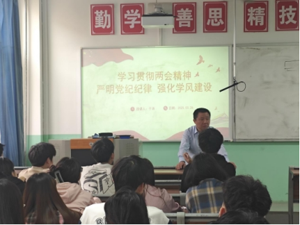 3月26日,院长于涛结合全国两会精神,以《学习贯彻两会精神严明党的纪律强化学风建设》为题作专题报告。通过"数字看发展""案例学纪律""行动树学风"三个模块,将宏观政策与学员实际紧密结合。特别设立的"学风建设党员责任区"制度,要求学员在教室、实验室、图书馆等场所亮身份、做表率,让党课成果可量化、能落地。