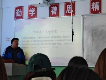 3月20日,党总支副书记陈强以《中国共产党的性质》为题,深入系统地阐释了“两个先锋队”(即中国工人阶级的先锋队,同时是中国人民和中华民族的先锋队)、“一个领导核心”(即中国共产党是中国特色社会主义事业的领导核心)、“三个代表”(即中国共产党始终代表中国先进生产力的发展要求,始终代表中国先进文化的前进方向,始终代表中国最广大人民的根本利益)的深刻内涵。。陈强副书记指出,这些表述不仅体现了党的根本性质,也为新世纪全面推进党的建设新的伟大工程提供了根本指针和行动纲领。他强调,在新时代的背景下,我们要坚持以人民为中心的发展思想,贯彻创新、协调、绿色、开放、共享的新发展理念,不断推动经济持续回升向好,满足人民日益增长的美好生活需要。