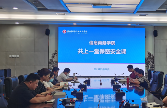 2025年5月21日,信息商务学院在办公楼第三会议室举办了以“共上一堂保密安全课”为主题的专题党课,旨在切实增强全体教师保密安全意识。党总支书记赵亚玲、党总支副书记陈强进行授课,全体教师参加。