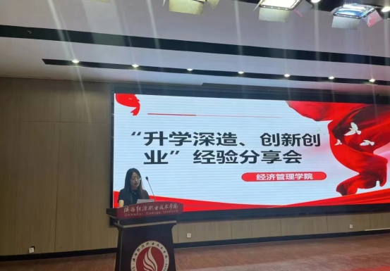为进一步推动经济管理学院的学风建设,营造良好学习氛围,充分发挥榜样的引领作用,让同学们对专升本考试有更加充分的认识和了解,充分掌握专升本的学习技巧,帮助同学们做好对未来的学习规划,陕西能源职业技术学院经济管理学院2024年6月5日在第一实训楼6楼举行了“升学规划,创新创业”主题分享会。