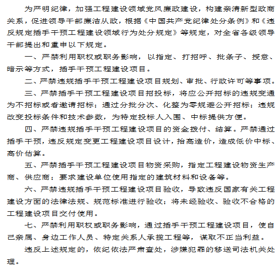 陕西省关于严禁领导干部违规插手干预工程建设项目的规定