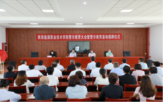 陕西省西安监狱党委委员、副总经理强希望、学校党委副书记任向明为“陕西能源职业技术学院警示教育基地”揭牌。