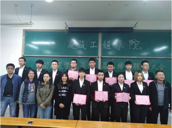 新一任建工学院团学干部队伍的组建,为我院注入了新的活力,相信全体学生干部必将牢记教诲和使命,把实干的精神落实到行动中,不断提高自己,完善自己,为我院团学工作创造新的业绩!此次换届聘任大会圆满结束。