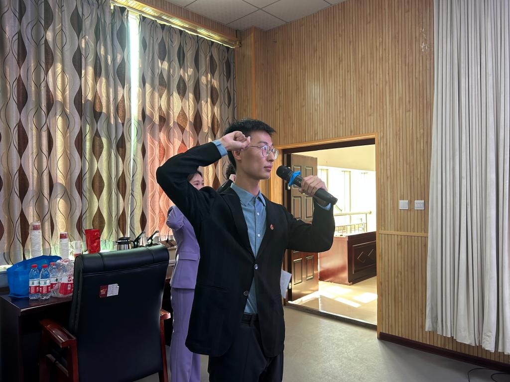宣誓结束后,经管学院团委书记任斌斌老师带领宣读了《团章》中有关团员义务和权利的条款,新团员和老团员代表依次发言。
