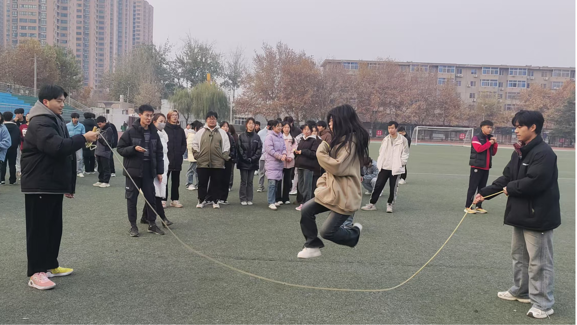 为营造浓厚的体育健康氛围,进一步丰富学生校园生活,促进学生身心健康全面发展,12月11日下午,建测学院在操场举行第二届“跃动青春 与绳为舞”跳大绳比赛。