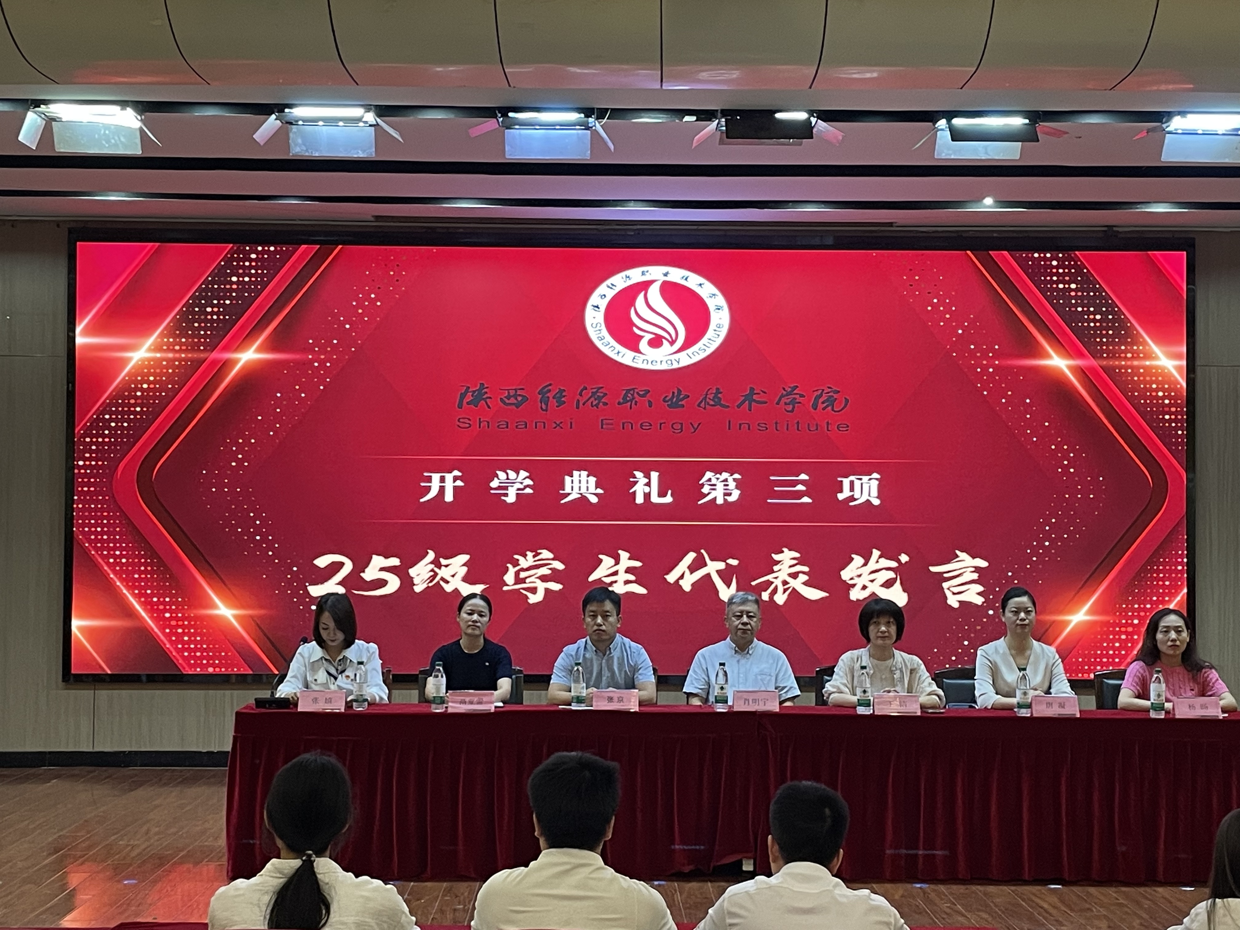 学生代表王盛星,向学院全体教师和学长们致以诚挚感谢。他表示,将珍惜大学新起点,通过课堂学习、实训锻炼和社团活动全面提升自我,用奋斗书写青春,努力成为有理想、敢担当、能吃苦、肯奋斗的新时代高素质技能人才。