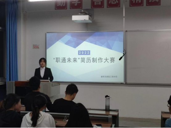 为了进一步增强大学生就业意识,掌握求职过程中的基本技能,提高我院学生求职竞争力,5月12日,建筑与测绘工程学院在教学楼116举办了“职通未来”简历制作大赛。