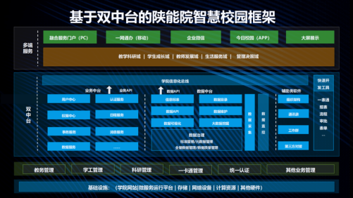 目前,陕能信息化建设正处于“数字校园”向“智慧校园”转型阶段。教育信息化基础设施已经基本普及,支撑平台、应用平台和信息安全体系已初具成效,实现了业务系统之间的数据汇聚工作,提供数据共享服务。