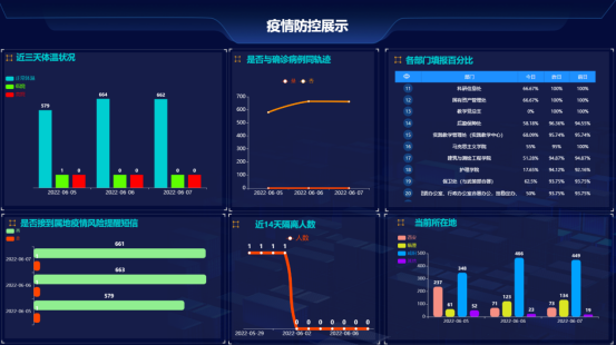 基于数据中台和填报应用,快速搭建、上线疫情防控等系列服务。包括:疫情防控、外省返咸信息登记、假期外出去向统计等服务,助力学校进行科学的常态化防疫。通过对接学院基础数据实现数据自动填报,大大减轻了全校教职工每日填报工作量。