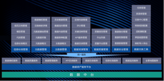 建设统一集成、功能全面、安全可靠数据服务平台,涉及服务全流程、覆盖全业务、面向全用户,保证数据质量提升和数据价值挖掘,涵盖全量数据、可分布式扩展、支持微服务应用运行。