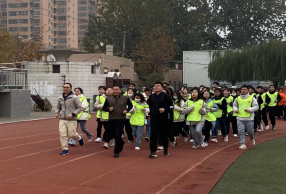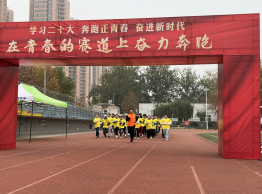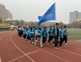 第一阶段——“学子风采展示跑”。马克思主义学院教师、各二级学院党总支书记、学工办老师和学生组成的方队绕操场慢跑,穿过“在青春的赛道上奋力奔跑”的拱门,彰显活力与风采。