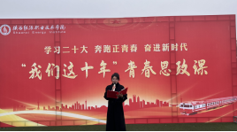第二阶段——“聚焦我们这十年”思政主题演讲。“这十年,是自信的中国。”各学院青年教师与学生代表聚焦祖国、地方、家乡的变化与成就,展开诉说与演讲。现场关于各领域奋斗者的故事娓娓道来,发展巨变一幕幕频频上演。
