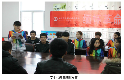 其余各位教师舒全安、刘苗、许增站、王甜、唐晓明、李秉昌、赵辉等都围绕本次活动主题,结合自己工作实际畅谈了自己的感受、感想,大家更加深切地体会到当年在中国工农红军身上所体现出的伟大的长征精神:即远大的理想、坚定的信念,不怕牺牲、前赴后继,勇往直前、坚韧不拔,众志成城、团结互助,百折不挠、克服困难的精神等等,表示要把长征精神继续传承下去,走好我们新的长征路,完成历史交给我们这一代人的任务,同时也对学生提出了希望。李宇刚洋、代萌、杨晨、陈明明、高凡凡、魏翔、张攀、成璠等同学也都纷纷踊跃发言。同学们对照当年的先辈,认真反思了今天的自己在学习和生活方面的不足,纷纷表示在学习和工作中,一定要向革命先辈们学习,认真负责的做好自己的本职工作,树立远大的理想信念,刻苦学习、不怕困难、吃苦耐劳、勤俭节约、报效祖国,走好自己的长征路。