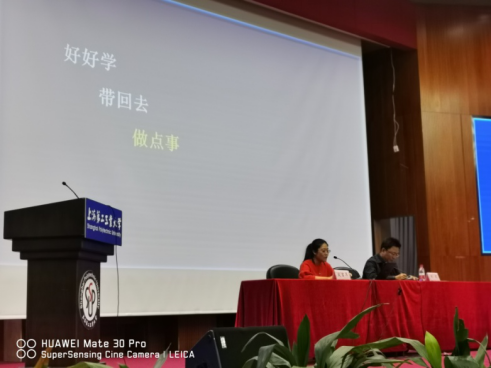 会上,高慧老师作题为“不忘初心、牢记使命,研修学习分享”的报告。此前,她参加了由教育部组织的全国高校思想政治理论课骨干教师研修班,经过为期21天的培训学习,将学习内容、前沿动态与调研收获梳理总结,与我校思政课专兼职教师分享研讨。她从四个方面展现学习内容:一是习近平新时代中国特色社会主义思想解读,二是思想政治理论课的地位作用及思政课教师的初心使命,三是高校思政课教学改革创新,四是思想道德修养与法律基础课程重难点解析。报告内容丰富、体会深刻,以优秀案例相佐证,给大家学习习近平新时代中国特色社会主义思想提供了新视角坚定思政课教师的初心使命提供了新认识、促进思政课教师课堂教学改革提供了新方法、把握课程重难点提高教学时效性提供了新思路。