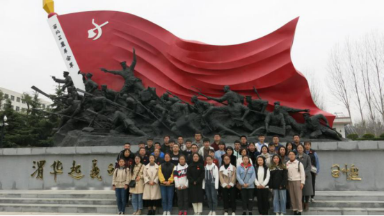 跟随讲解员,我们进入纪念馆展厅依次参观了7个陈列室,了解了渭华起义的经过,聆听了感人的革命故事。走出展厅,我们来到西北工农革命军军委指挥部,这场革命斗争就是在这里运筹帷幄。接着,我们走到原高塘小学群体建筑中的校园中心道路,这里是一条用青砖和鹅卵石铺成的长20米,宽2米的巨幅标语:“同志们赶快踏着先烈的鲜血前进啊”我们被这条镶嵌在渭华大地上缅怀革命先烈的特殊标语深深地震撼,被革命先烈不畏牺牲、前赴后继的革命精神所感动。随后,我们依次参观了中共华县县委办公楼旧址、西北工农革命军军委扩大会议遗址(两颗古槐遗址)和烈士殉难井。最后,我们登上渭华起义烈士纪念塔,塔的正面雕刻着邓小平题词:“渭华起义烈士永垂不朽”。在革命烈士纪念碑前,全体师生怀着崇敬的心情,向英勇牺牲的革命烈士三鞠躬,全体党员举行了庄重的宣誓仪式,重温入党誓词,缅怀先烈革命精神,牢记共产党员的初心使命。