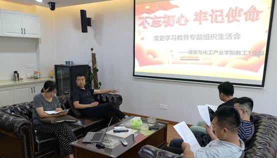 按照当时学习专题生活会要求,产业学院教工1支部认真组织,精心安排,积极筹划,提前安排所有党员撰写会议发言稿件,并上交汇总。会议第一步:支部所有参会党员按照要求进行了发言;第二步:全体党员进行批评和自我评,剖析党支部各委员及党支部党员教师在四史学习中存在的问题;第三步:列席参会的煤炭与化工产业学院党总支委员会委员袁晓安进行总结发言。