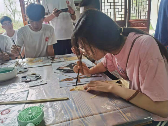 图为实践队员体验皮影制作