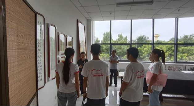 随后洪东海馆长带领实践团参观长武县文化馆,进入文化馆一楼,“文化兴国运兴 文化强民族强”映入眼帘,文化馆内宽敞明亮,设非遗陈列室、手工布艺陈列室和书画摄影展室,舞蹈排练厅、民乐培训室、西洋乐培训室、秦腔戏曲培训室和数字化服务中心等,可充分满足长武县广大群众的文化活动需求。实践团的队员在洪馆长的讲解下,了解和感受到了长武独特民俗文化的特色,感受中华传统文化、民俗文化的魅力。