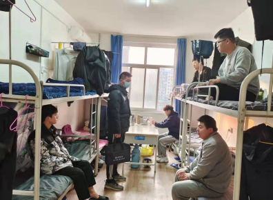 学生封控管理期间,原班班主任、校内疫情防控责任人、辅导员、带课老师互相协同配合,形成了“线上-线下”双线管理模式。通过线上会议、电话等线上教育,宿舍检查、深入宿舍谈心谈话、送关怀送温暖、就医问诊陪护等现场工作,全面了解学生学习、生活所急、所需,确保学生学习、生活顺利开展。