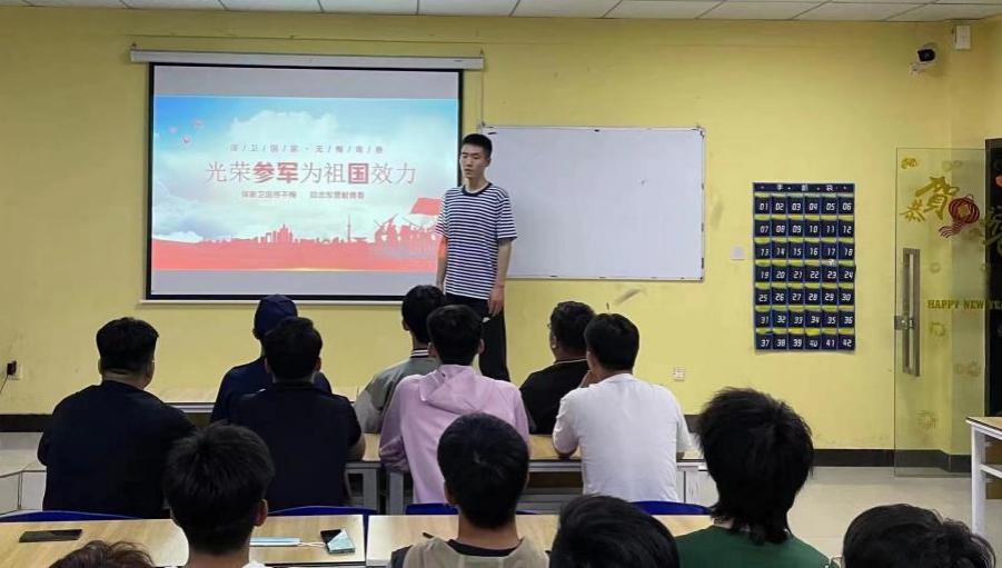 5月10日,于培训楼405举行“光荣参军 为祖国效力”征兵动员会,20、21级班长、团支书、征兵意向的学生50余人参加,活动由赵炬老师主持。在动员大会上,赵炬向学生介绍了大学生应征入伍的政策,要求学生关注全国征兵网,及时获取权威信息。