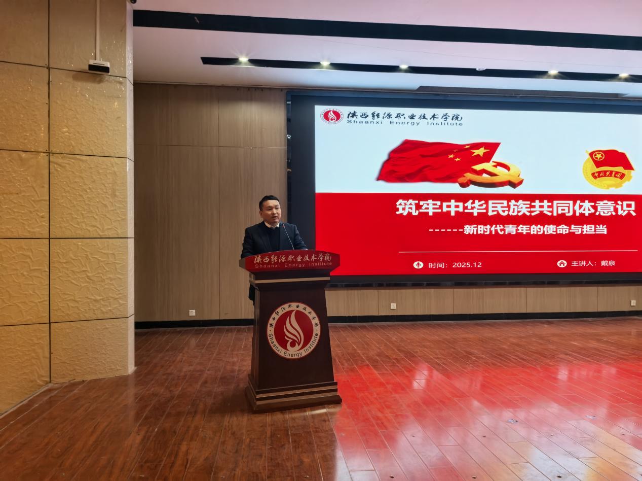 为深入学习铸牢中华民族共同体意识的重要内涵,引导青年团员明确新时代使命担当,12月3日,能源化工学院组织开展专题团课。陕西能源职业技术学院学工部派驻教师戴泉担任主讲人,学院党总支书记陶燕、副书记张继军及团委书记李鹏等共同参与,与全院青年团员一同感悟民族团结精神,凝聚奋进力量。