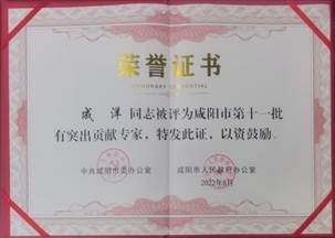 10月27日,咸阳市人民政府组织召开专家人才学习党的二十大精神暨表彰座谈会,集体表彰咸阳市第十一批有突出贡献专家,我校煤炭与化工产业学院教师刘彦锋、成洋荣获 “教育教学类”专家称号。