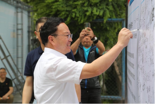 党委副书记任向明在宣传展板上签名