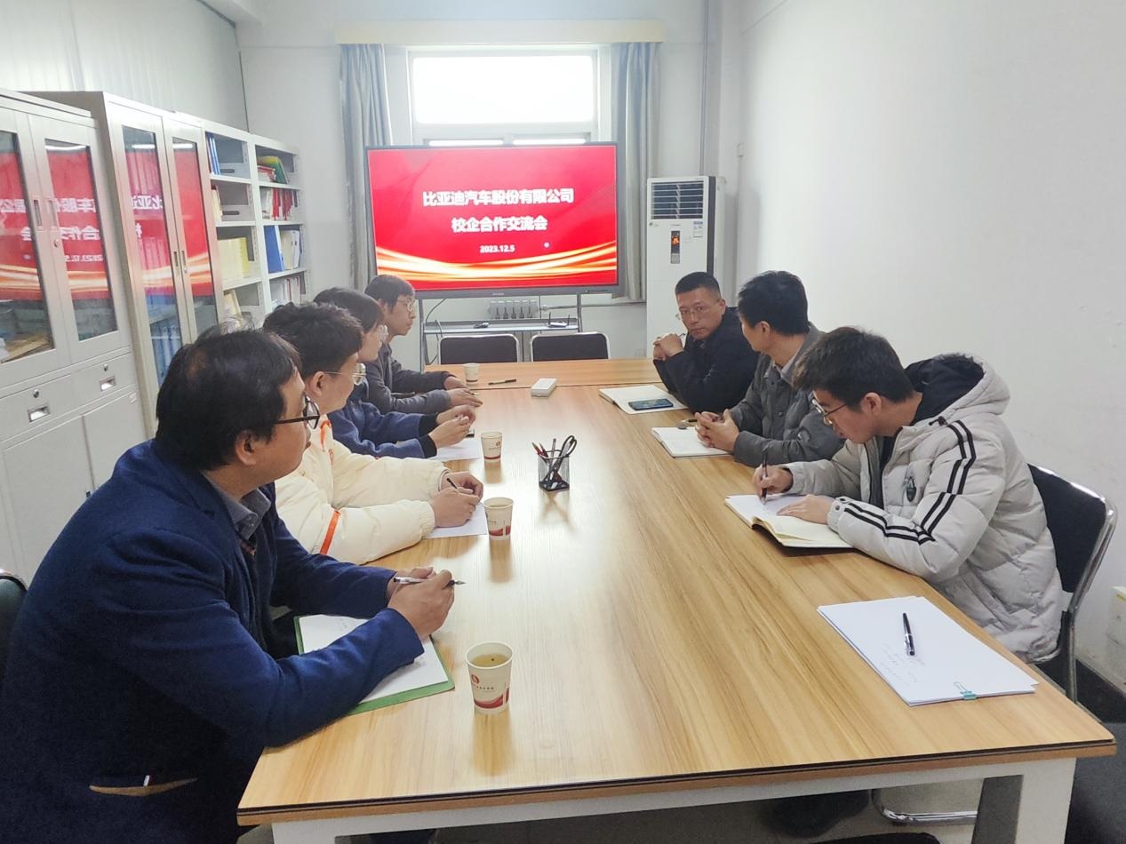 2023年12月5日,比亚迪汽车有限公司与行云新能科技有限公司在我院举行了一场深度的校企合作交流会。双方就未来的合作方向和计划进行了深入探讨,旨在为学生提供更多的就业和成长机会。
