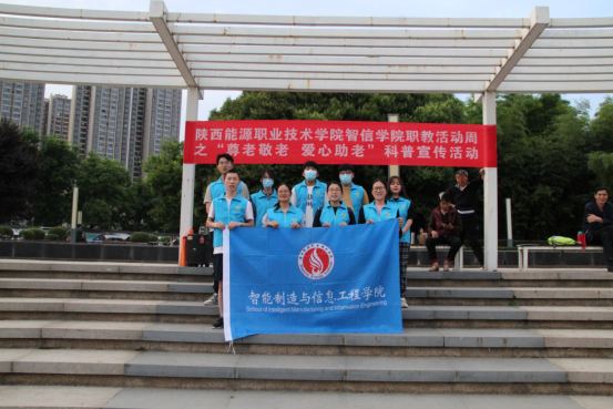 为进一步推进校园文化建设,丰富活动载体,展现我院专业办学特色,根据《陕西能源职业技术学院好2021年职业教育活动周相关工作的通知》的精神,5月26日 18:00智信学院前往咸阳市渭城区政府广场开展,开展“尊老敬老 爱心助老”科普教育宣传活动,智信学院学工办主任景安琪、辅导员尹艳玲、王倩一行20人参与此次活动。
