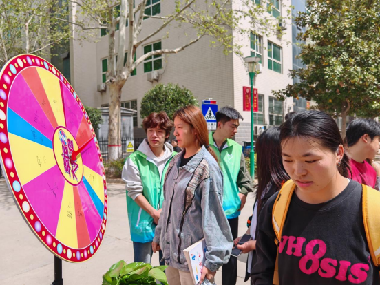 同学们热情高涨,不一会儿,现场便排起了长龙。大家秩序井然地转动幸运大转盘,期待着与心仪的绿植邂逅。领取绿植后,同学们认真地登记信息,整个过程有条不紊。手捧绿植的那一刻,同学们脸上洋溢着喜悦,仿佛捧着一份珍贵的礼物。一位同学兴奋地说:“能领养到属于自己的绿植,我太激动了!我一定会精心呵护它,陪伴它一起茁壮成长。”