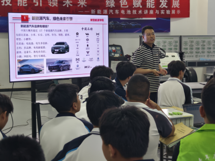 讲座中,团队教师通过互动问答、示范讲解等环节,引导学生结合具体案例剖析技术应用场景,深入理解新能源汽车电池技术的产业应用逻辑,现场学习氛围热烈。