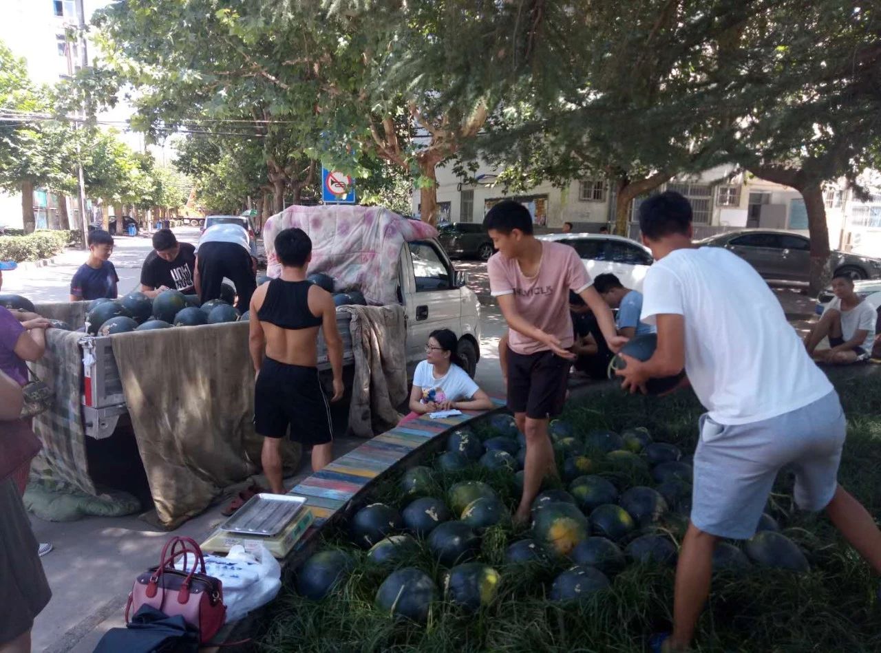 我院老师前往公寓、门卫为一线的楼管阿姨和门卫叔叔送上可口的西瓜,感谢志愿者服务期间她们的辛苦付出。