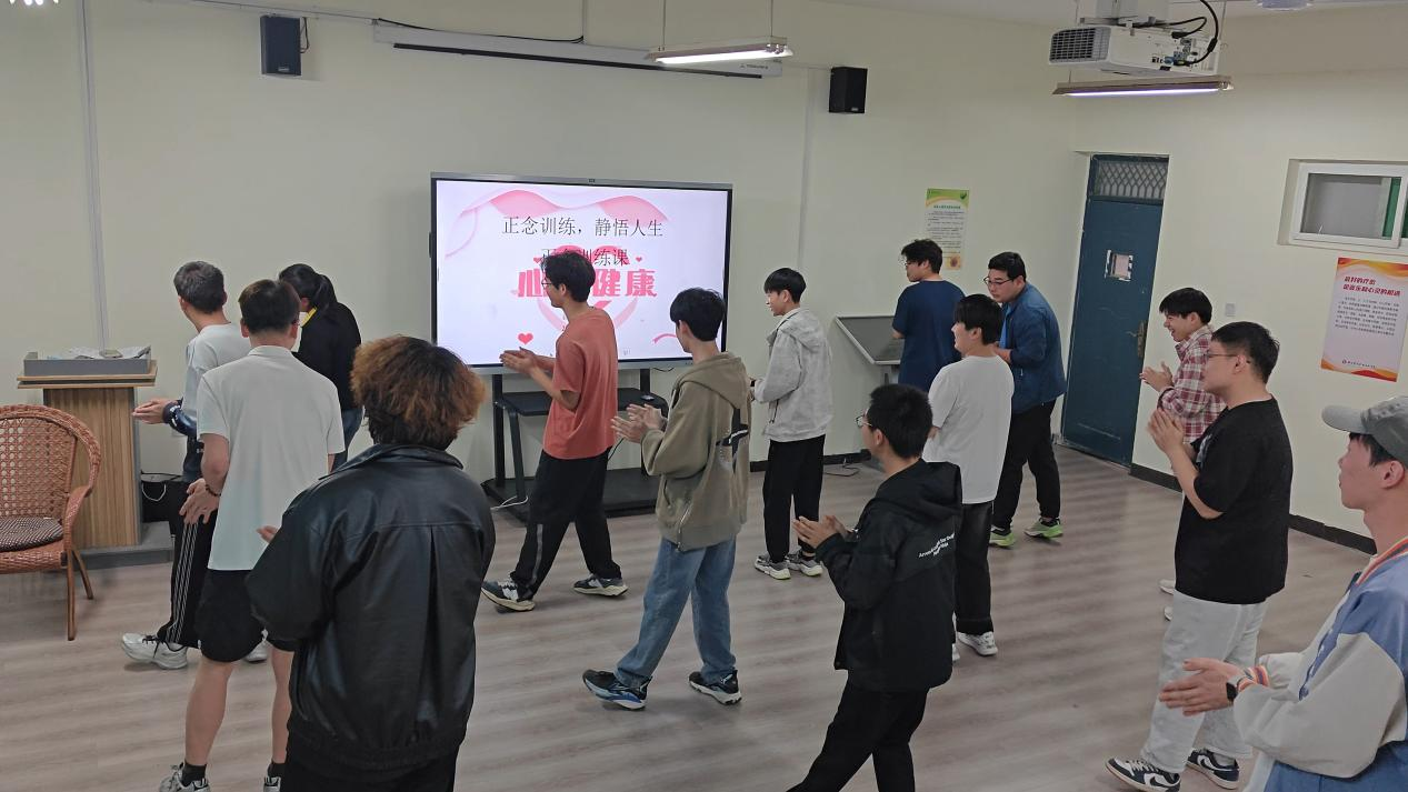 活动伊始,心理辅导员王倩老师以一场活力四射的拍拍操运动拉开了序幕。同学们跟随欢快的节奏,尽情舒展身体。这一环节不仅成功激活了同学们的身体能量,更迅速活跃了现场气氛,让大家迅速融入活动氛围,对接下来的正念训练充满了期待与热情。