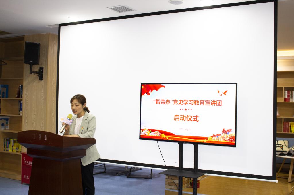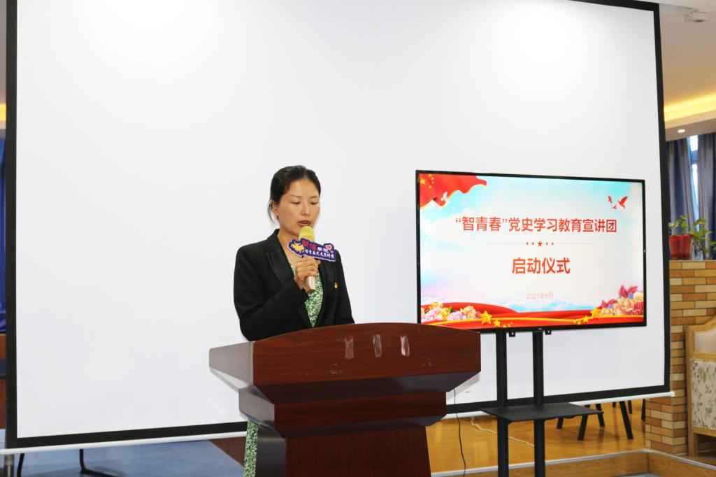 启动仪式上,党总支宣传委员景安琪宣读《智信学院“智青春”党史学习教育宣讲团活动方案》;曹俊侠书记、李粒副书记为宣讲团成员颁发聘书、佩戴胸牌;宣讲团成员代表何诗婷同学做表态发言。