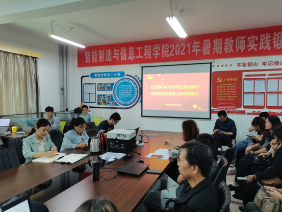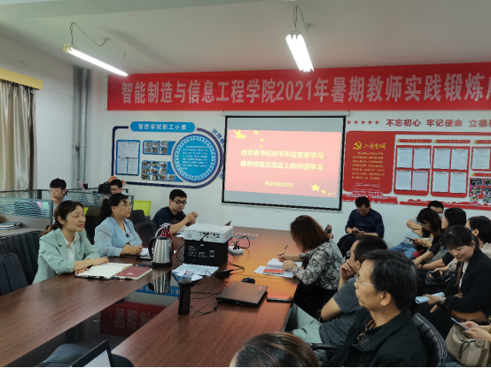 为推动党史学习教育深入开展,贯彻落实刘予东书记在党史学习教育总结会上的讲话精神,2021年9月29日下午,智信学院组织全体教职工召开刘予东书记讲话精神学习会。会议由智信学院党总支书记曹俊侠主持。