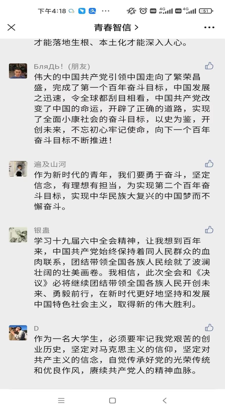同学们坚持线上线下学习不断线,不仅利用学习强国和青春智信官微平台进行线上学习交流,还在线下学习了《习近平的七年知青岁月》、《习近平总书记在北京冬奥会、冬残奥会总结表彰大会上的讲话》等内容,并认真撰写学习心得体会。