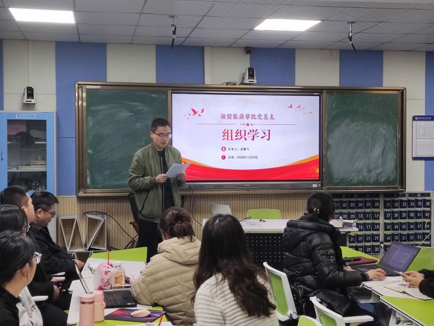 2025年11月26日,新型能源学院按照宣传部学习要求开展第十三周政治学习活动。本次学习由学工办统筹,宋鹏飞、王铭艺两位老师担任领学人,围绕指定学习内容展开深入解读与交流分享,全院教师共同参与学习。