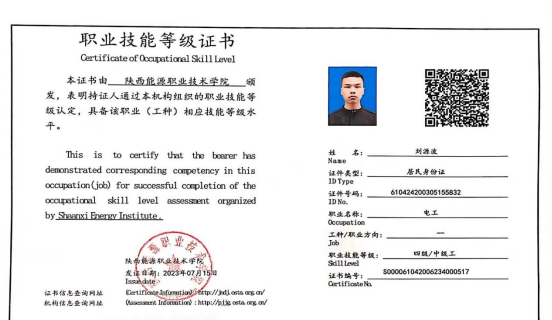 职业技能等级证书:电工、变配电运维、光伏电站运维职业技能等级证书。