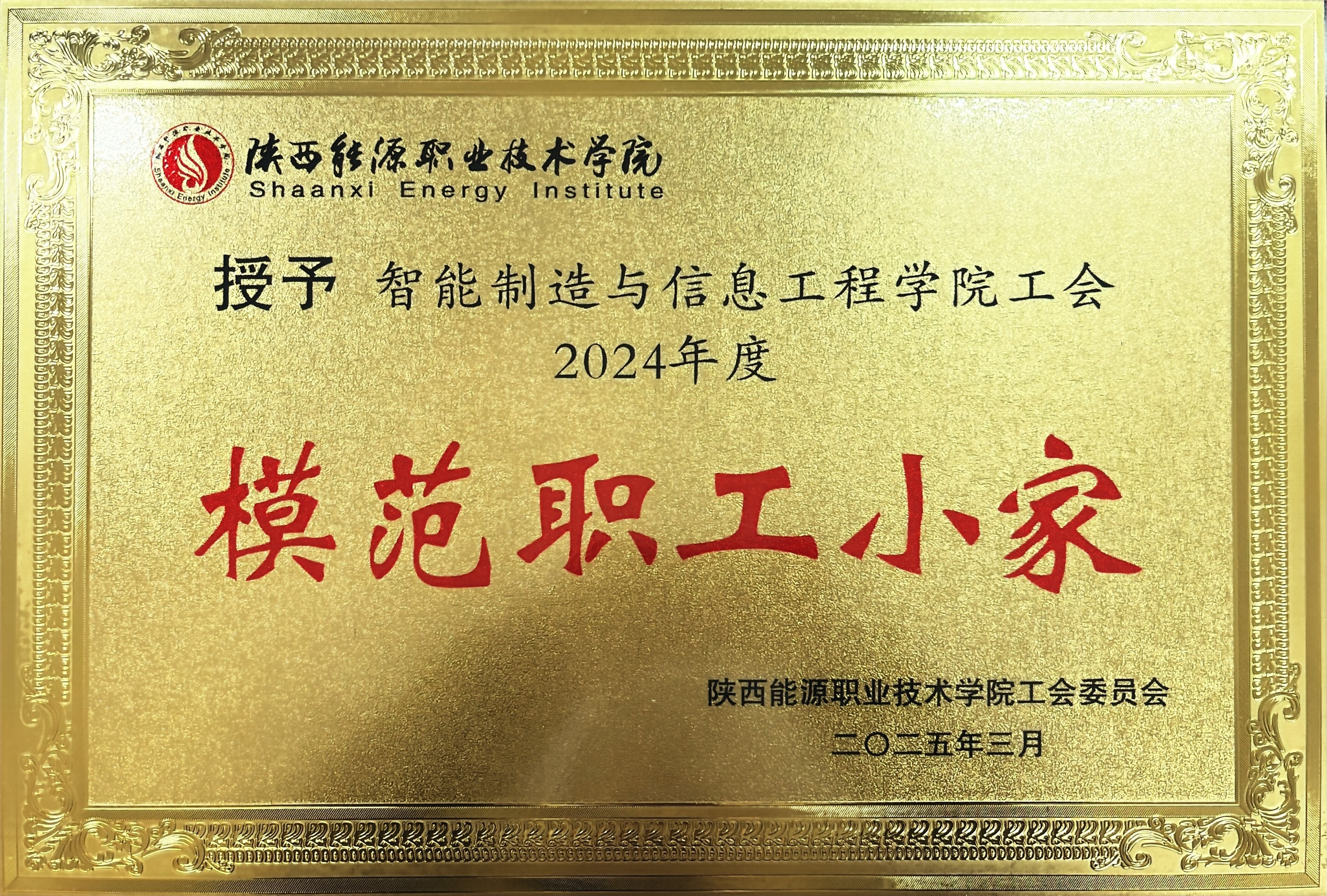 2025年3月新型能源学院工会(原智能制造与信息工程学院工会)荣获校级模范职工小家