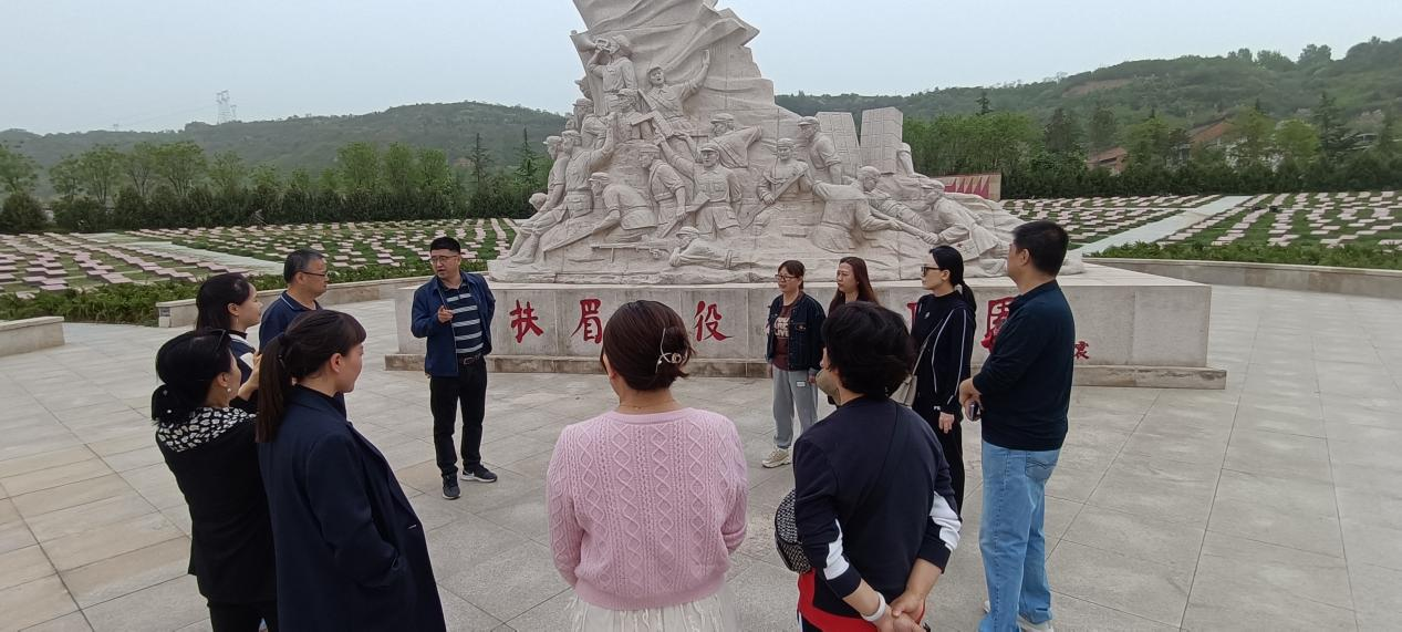 为深入贯彻落实学习党的二十大精神,深刻领悟伟大建党精神,激励党员大力弘扬爱国主义精神,引导党员在感悟革命情怀中汲取奋勇前行的力量,4月20日,图书馆党支部组织党员一行15人前往陕西省宝鸡市眉县“扶眉战役烈士陵园”,开展“缅怀革命先烈,追寻红色基因”为主题的特色党日活动。