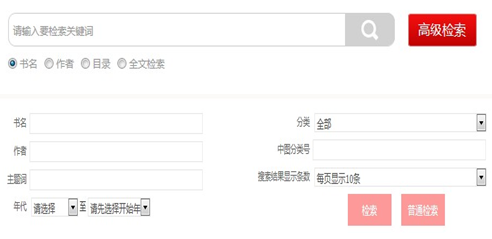 在搜索框直接输入检索词,检索词可定位到书名,作者,目录或全文中,然后点击搜索,将为您在海量的图书数据资源中进行查找。