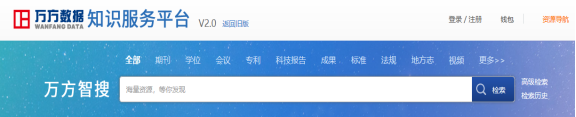 万方数据知识服务平台检索界面: