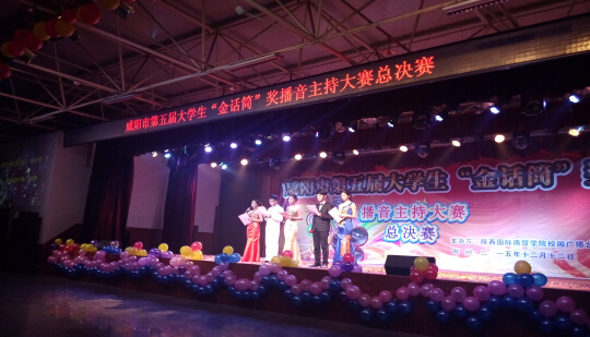 2015年12月12日,咸阳市第五届大学生咸阳市第五届大学生“金话筒”播音主持大赛总决赛在陕西国际商贸学院举行,决赛第一环节自备稿件或者两两搭配模范一段台词,第二环节两两搭配模拟主持,第三环节才艺展示,经过激烈角逐,最终我院医学技术系口腔1503班杨梦瑶同学荣获优秀奖。