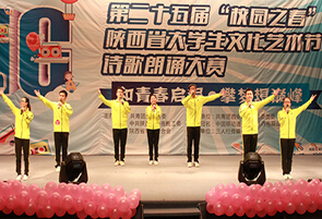 2014年6月12日,第25届“校园之春”陕西省大学生文化艺术节诗歌朗诵大赛在西安翻译学院举行。此次大赛由共青团陕西省委、中共陕西省委高教工委、陕西省学生联合会主办,由西安翻译学院承办。大赛分专业组和非专业组2个组别分别举行。共有来自陕西省各大高校的53支代表队参加比赛,我院选送2支代表队分别参加专业组和非专业组比赛并获奖。